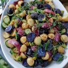 In this delicious riff on potato salad, Chef Serge Madikians of Serevan restaurant, in New York’s Hudson Valley, uses two types of cucumbers—fresh and pickled—plus ground sumac for a tangy flavor. An Armenian from Iran, the chef has developed an original and distinctive cuisine that stays true to the seasons. If you use purple potatoes as well as white or yellow varieties, simmer the purple ones separately so the color won’t bleed.