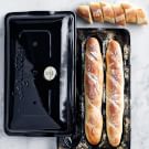 To make perfect baguettes at home, with a light interior and perfectly browned crust, it's essential to use a baguette pan, which cradles the dough in the bread's characteristic long, narrow shape and has perforations that help maintain the proper moisture level and air flow. This recipe was developed for Emile Henry’s ceramic baguette baker, which re-creates the conditions that you find in a traditional bread oven, so even novice bakers can turn out bakery-worthy bread.