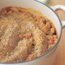 In a small bowl, stir together the bread crumbs, cheese and the 1 tsp. olive oil. Sprinkle the bread crumb mixture over the top and bake until golden brown, about 20 minutes. Let cool slightly before serving. Serves 4.