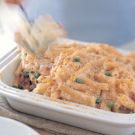 Baked pasta dishes are always a crowd-pleaser, but you can save time by simply mixing the pasta with the hot sauce and then serving. Omit the crumbs or garnish the pasta with toasted bread crumbs. Nearly any shaped pasta, such as linguine or bow tie, can be used with this creamy, rustic sauce.