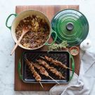 Beef Skewers with Onion Ragu