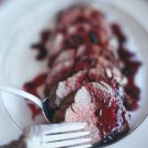 The tenderloin is the most tender cut of beef and is the source of the filet mignon. It needs only relatively brief cooking. The Syrah reduction, made from the flavorful pan juices, is quickly made while the roast rests.