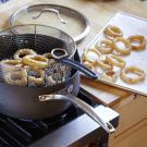 Adam Fleischman, chef/owner of the acclaimed Umami Burger restaurants in Los Angeles, gave us this recipe for crispy onion rings, which are the perfect accompaniment for his stuffed barbecue burgers. Be sure to add the onion rings one at a time to the hot oil and don’t overcrowd the pot; this will prevent the onions from sticking together as they cook.