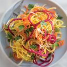 Colorful and nutritious, this salad will spark a love affair with beets. And it’s a snap to prepare using a spiralizer, which transforms the vegetables into long, thin strands. Although it’s not essential, to minimize the bleeding effect of the red beets, you can rinse and then soak the spiralized beets in cold water for 5 to 10 minutes, changing the water as it turns pink.