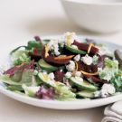 Arrange the salad greens evenly on a platter or divide among individual plates. Using a slotted spoon, remove the beets from the bowl and place on the greens. Tuck the cucumber slices in among the beets. Drizzle any vinaigrette remaining in the bowl over the beets. Sprinkle evenly with the remaining green onions and slivered orange zest and top with the cheese. Garnish with dill sprigs and serve. Serves 4.