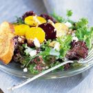 In a bowl, combine the beets with 1/4 cup of the vinaigrette, season with salt and pepper, and refrigerate until ready to use.