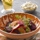 Beets with Avocado Puree and Pumpkin Seed Crumble
