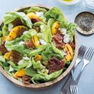 Tender greens, like Bibb and butter lettuce, are best when dressed then tossed gently with your hands rather than tongs, which can bruise the leaves. In the winter months, substitute persimmons, pears, apples or even dried cherries for the peaches. Toasted hazelnuts or pecans are also a tasty addition.