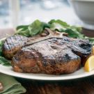 Transfer the steak to a cutting board and season generously with pepper. Garnish with lemon wedges and the arugula and serve immediately. Serves 2.