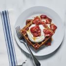 Brown Butter Cornmeal & Buckwheat Waffles with Strawberry-Ginger Maple Syrup