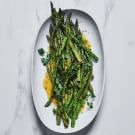 When you’ve got super-fresh asparagus, it needs very little adornment. Here, award-winning chef and cookbook author Bobby Flay grills the spears to impart a deliciously smoky flavor, then drizzles them with a simple vinaigrette of lemon juice, honey, Dijon mustard and olive oil. Watch the asparagus carefully and don’t let them overcook—the spears should be nicely charred in spots and retain their crisp-tender texture.