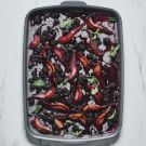 When you’re hosting a weekend brunch, fresh fruit is always a welcome addition to the meal. In this recipe, award-winning chef and cookbook author Bobby Flay roasts a variety of fruit (feel free to change it up) in red wine seasoned with vanilla and a touch of cinnamon. Then he drizzles a blend of honey and tahini over the fruit for a sweet-nutty finish. To ensure the fruit cooks evenly, try to spread everything in a single layer in the baking dish.