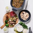 Award-winning chef and cookbook author Bobby Flay knows the secret to preparing juicy, meltingly tender pork shoulder: braise it low and slow for hours. This recipe uses the slow cooker for a fuss-free take with maximum results. The meat is cooked in a bright, flavour-packed sauce made from tomatillos, jalapeños, poblano peppers and garlic. The vegetables are first roasted in the oven to deepen their flavour, then quickly puréed in a blender. Tuck this succulent pork inside warmed tortillas and pile on your favourite toppings, such as avocado, cotija cheese and Greek yogurt. Be sure to make a batch of his favourite quick-pickled red onions. Their tangy and slightly sweet bite provides a wonderful contrast to the rich meat.