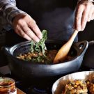 Kale adds bright color to these tender cannellini beans, which make a wonderful side dish for our Chicken Breasts with Glazed Root Vegetables. If desired, cook the beans in vegetable broth instead of chicken broth and serve as a hearty vegetarian entrée.