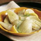 Drizzle the sauce over the fennel and garnish with lemon wedges. Sprinkle with the chopped fennel tops and garnish with the whole fennel fronds. Serve immediately. Serves 6.