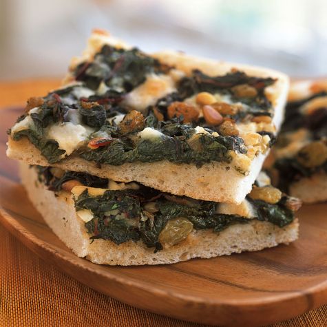 • Balsamic-Red Onion, Chard & Gorgonzola Tart
