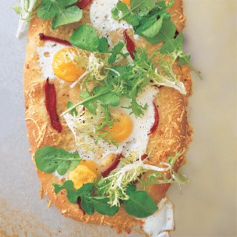 • Rustic Flatbread with Egg, Arugula and Pecorino