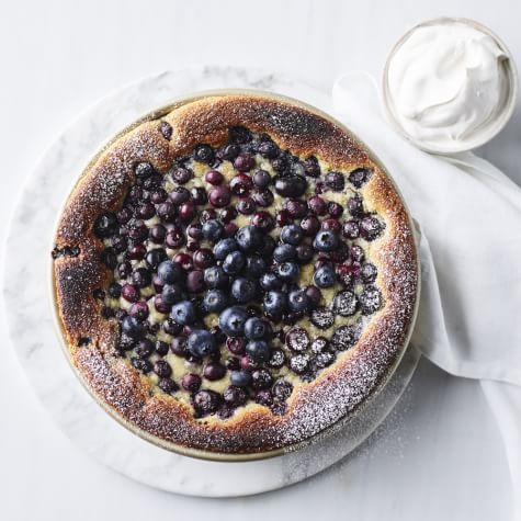 • Sunken Blueberry Cake with Mascarpone Whipped Cream