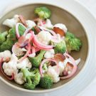 Broccoli and Cauliflower Salad with Pickled Onions and Bacon