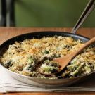 We’ve put a sophisticated new spin on a traditional Thanksgiving vegetable, transforming brussels sprouts into a creamy gratin. This dish offers an enticing contrast of flavors and textures: Caramelized shallots offset the slight bitterness of the brussels sprouts, while cream and two kinds of cheese add richness. A bread crumb topping lends irresistible buttery crunch.