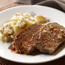 Transfer the mixture to the prepared loaf pan. Spread the pineapple glaze evenly on top of the meat loaf. Bake until an instant-read thermometer inserted into the center of the meat loaf registers 160°F, about 1 hour. Let the meat loaf rest for 10 minutes, then turn it out onto a cutting board and cut into slices. Serves 6.