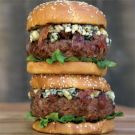 Serve the hamburgers on the grilled rolls topped with the blue cheese, lettuce, caramelized onion jam, ketchup and mustard. Serves 4.