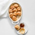 Warm, flaky biscuits are always a crowd-pleaser for holiday brunches. Ours are simple to prepare and deliver loads of flavour, especially when smeared with salted butter, drizzled with honey and sprinkled with flaky sea salt. The buttermilk in the dough lends a zesty tang and helps the biscuits rise so they’ll be tall and fluffy. To ensure yours turn out super tender, don’t overmix the dough and handle it as little as possible.