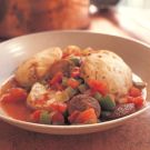 Split the biscuits in half crosswise and divide among shallow bowls. Ladle the stew over the biscuits and serve immediately. Serves 4.
