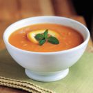 Ladle the soup into warmed bowls and garnish each serving with an orange slice and a sprig of mint. Serves 4 to 6.