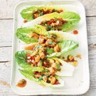 This playful spin on tacos starts with a savory Asian-style chicken-and-vegetable stir-fry, then uses crisp, fresh romaine lettuce as a stand-in for tortillas. Chopped cashew nuts add healthy crunch and cilantro lends freshness.