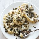 Using a spatula, carefully transfer the cauliflower slices to a platter and serve with the remaining 1/2 lemon, cut into wedges for squeezing. Serves 4.