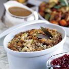 Transfer the dressing to the prepared baking dish and bake until browned and crispy, 1 1/4 to 1 1/2 hours. Serves 10 to 12.