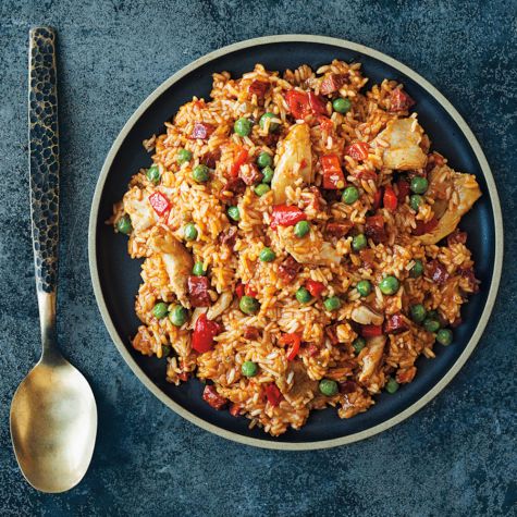 Chicken and Chorizo Paella with Roasted Red Peppers