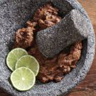 In a large molcajete, combine the chipotle chilies, lime juice, garlic powder, onion powder, cumin and cilantro. Using a pestle, grind the ingredients together to form a paste. Add three-fourths of the black beans and grind until well mashed. Stir in the remaining beans and season with salt. Serve with tortilla or corn chips for dipping. Makes about 2 1/2 cups.