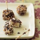 Naturally sweet and creamy when frozen, bananas are full of potassium. Cover them with dark chocolate and nuts and you have a quick, healthy treat. For this recipe, choose bright yellow bananas that are not too ripe and freckled but rather still have some firmness.