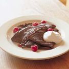 To assemble, lay a crepe flat, spoon 1 to 2 Tbs. of the jam into the center and fold the crepe into a triangle. Repeat with the remaining crepes and jam. Divide the crepes among 8 individual plates. Top with a dollop of whipped cream and garnish with raspberries.