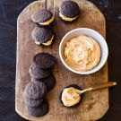 A retro treat, whoopie pies feature cakey chocolate cookies sandwiching a creamy filling. For a classic version, swap out the peanut butter filling for marshmallow creme.