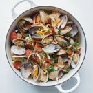 In the late 1970s Chuck Williams started visiting Portugal, where he visited a restaurant north of Lisbon that specialized in seafood dishes from the province of Algarve in southern Portugal. The waiter brought to the table a cataplana, a hinged copper cooking vessel shaped like a clamshell. Later Williams discovered this easy way to cook clams in a cataplana, but a heavy saucepan or Dutch oven works just as well. Find this and many of Chuck Williams' other favorite recipes in our limited edition version of Cooking at Home, which celebrates his 100th birthday.