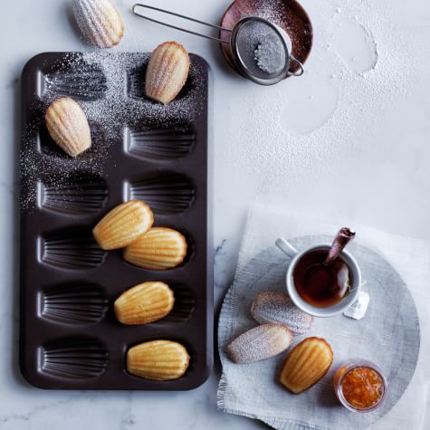 Note: Madeleine pans typically have 8 or 12 shallow molds and come in tinned steel, metal with a nonstick finish, or pliable silicone. If you use a black nonstick madeleine pan, reduce the oven temperature to 375°F (190°C) or shorten the baking time by a few minutes.