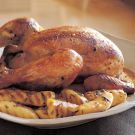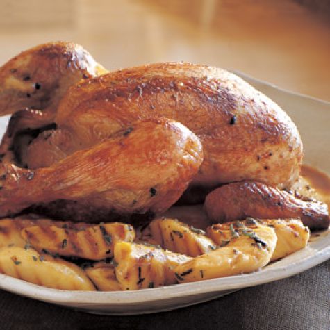 Arrange the apples on the platter around the chicken. Carve the chicken and serve immediately. Serves 4.