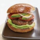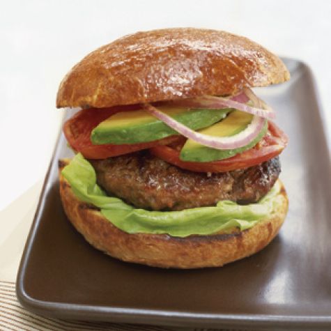 For the barbecue sauce and bacon topping, place the cheese slices on the burgers during the last 1 to 2 minutes of cooking. While the burgers are cooking, in a small saucepan over medium-low heat, warm the barbecue sauce. Spread the cut sides of the rolls with the sauce. Place the burgers on the bottoms of the buns. Top each with 2 bacon slices and the tops of the buns. Serves 4.