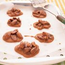 Working quickly, drop the candy by heaping tablespoonfuls, using one spoon to scoop and another to push the mixture onto the prepared baking sheets. Let stand at room temperature until firm, about 1 hour. Eat immediately, or store between layers of waxed paper in an airtight container for up to 10 days. Makes about 36 pralines.