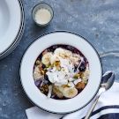 Quinoa makes a delicious alternative to oatmeal for breakfast. In this recipe, from Sappho Hatzis of New York City’s Bluestone Lane, it’s cooked with coconut milk and then topped with two kinds of fruit plus almond butter, nuts, fruit and coconut chips for a satisfying morning meal.