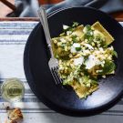 Filled with a simple puree of corn, ricotta and Parmesan cheese, these ravioli come together quickly thanks to our maple ravioli tray, which helps you make a tight seal that will help your ravioli hold up during cooking. However, you can use a ravioli mold or stamp instead, if you prefer, or even make the ravioli by hand, crimping the edges with a fork. A drizzle of freshly made basil oil lends color and bright herbal flavor to the dish. To help the basil retain its vibrant hue, blanch the leaves before blending them with the olive oil.