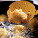 Gently drop the batter by heaping tablespoonfuls into the hot oil, being careful not to crowd the pan. Fry until browned on one side, about 2 minutes. Flip the fritters over and fry until golden, puffed and cooked through, 2 to 3 minutes more. Be careful, as the hot oil may splatter. Using a slotted spoon, transfer to the prepared rack(s) to drain. Repeat with the remaining batter. Transfer the hot fritters to a napkin-lined basket and serve immediately with the lime wedges. Makes about 24 fritters.