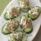 Slice the cucumber thinly on the diagonal. Place a dollop of the crab mixture on top of each cucumber slice, sprinkle with the paprika and garnish with flowers. Arrange on a platter and serve immediately. Serves 4 to 6.