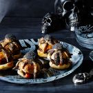 Making these miniature burger buns topped with a spooky spider takes a while, but your patience will be rewarded with a fun dish that will be the highlight of your Halloween buffet. We’ve stuffed the buns with an Asian-inspired burger topped with sriracha mayo, but you can make plain ground beef burgers instead if you prefer.
