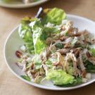 Both curry powder and crisp apples are classic partners for chicken, and here they are combined in a fresh, light salad tossed with a creamy dressing, perfect for a light supper or lunch. If you like, you can use purchased candied pecans in place of the toasted pecans.