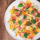 Chris Cosentino, chef at Incanto restaurant, first made this salad many years ago for a demo at the farmers’ market. It was a way to make fun of some of the shoppers who were complaining that the vegetables were dirty when they bought them. What could be better than earthy root vegetables paired with the earthiness of fresh truffle?