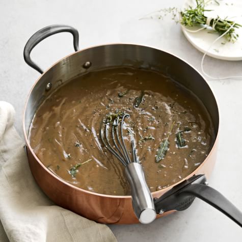 No Thanksgiving feast is complete without gravy, and it’s a snap to prepare with our exclusive turkey gravy base. Here we infuse it with plenty of fresh sage for an especially aromatic gravy that will take your turkey and mashed potatoes to the next level. To make getting dinner on the table easier, you can make the gravy up to 2 hours in advance, leaving the sage leaves in the mixture, if you like, for even more sage flavor. Just reheat the gravy gently in a saucepan and garnish it with the fried sage immediately before serving. If you like a thinner gravy, add a bit more milk. For a thicker gravy, let it simmer for a few minutes longer.